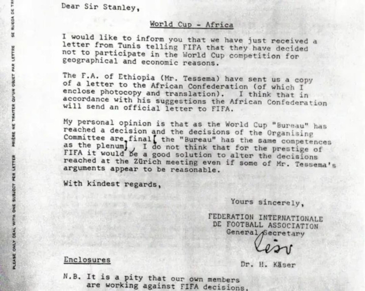 1966年英格兰宇宙杯,海外足联只留出1个参赛限额,由非洲、亚洲和大洋洲共同争夺。非足联以为这是种族懊恼活动,15个合适参赛资历的非洲国度发表谄媚声明沿途退赛。1968年,海外足联终于得意为非洲和亚洲各自单独建筑宇宙杯限额。
