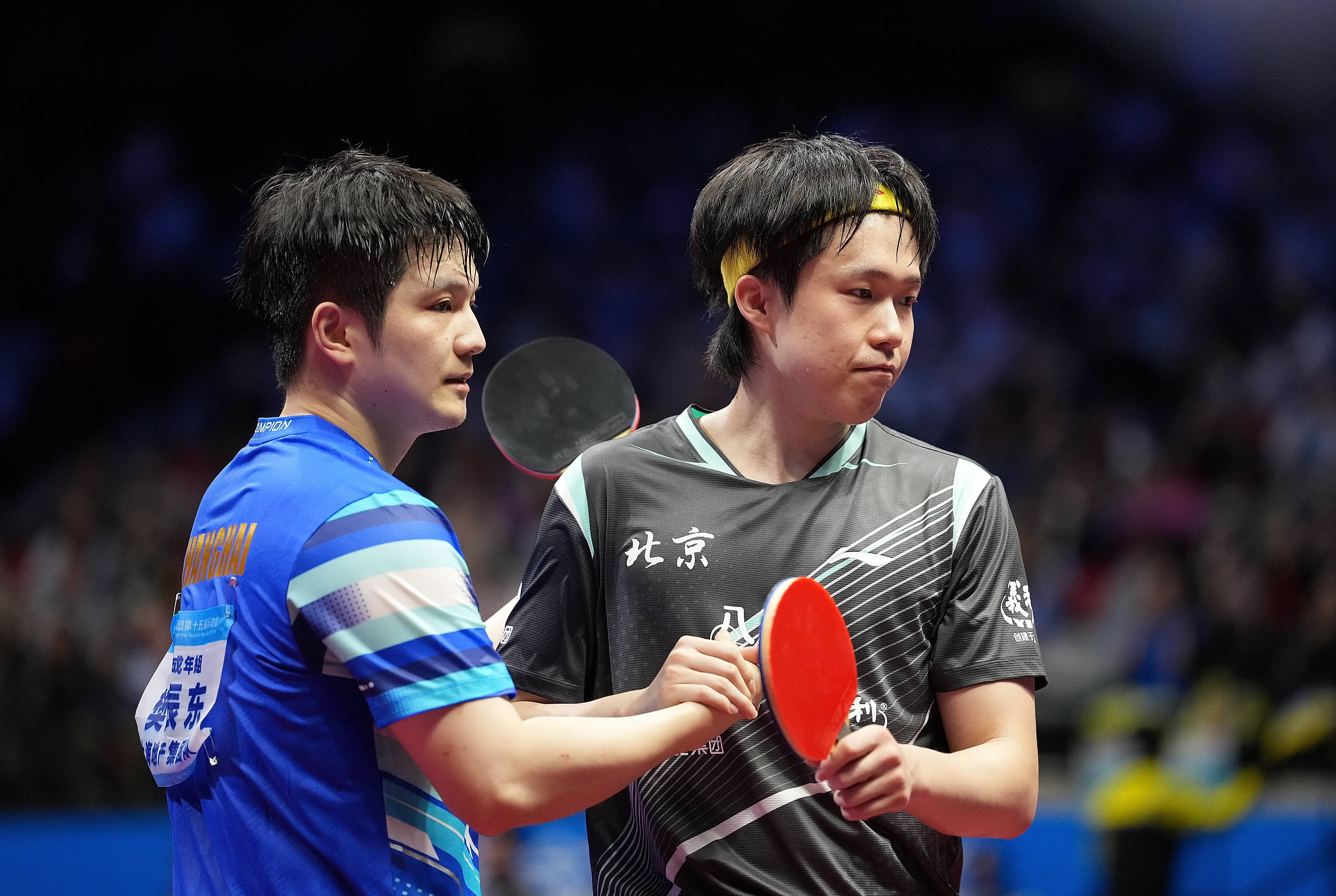 11月15日,樊振东(左)和王楚钦在比赛后抓手请安。新华社记者 周到 摄有记者问到樊振东的技战术部署,他回复说:“比赛是动态的,可能每一次技战术会有微调,或有先后划定变化,毕竟两边在斗智斗勇,是以我今天尽头兴隆,在一些要道节点上,有勇气去作念决定,何况有智力去执行这些决定。”